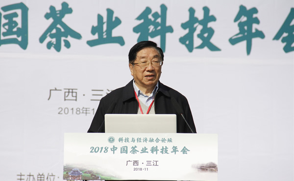 本屆年會分別設立了主會場、兩個茶葉科技分會場以及一個茶葉經濟分會場。主會場特別邀請到中國工程院陳宗懋院士作了題為《飲茶與健康研究三十年進展和問題》的特邀報告。陳宗懋院士介紹了飲茶與健康研究的進展,介紹了茶抗氧化、抗衰老、降血壓、降血脂、減肥、預防心血管及抗癌方面的功效及其物質基礎和生理機制,同時也介紹了飲茶與健康研究方面面臨的困難,指出了今后茶與健康產業發展的戰略和研究重點方向。廣西壯族自治區農業廳黨組成員、總農藝師李如平作題為“發展茶產業助力精準扶貧”的報告,介紹了廣西茶產業在結構調整、扶貧致富方面的一些成功經驗以及當前面臨的問題和未來發展的戰略設計、政策措施和工作目標。在主題為“茶產業綠色發展技術集成與模式 ”、“茶葉加工新技術、新產品”和“ 茶葉經濟新形勢、新探索、新動能”的科技分會場和經濟分會場上, 24位知名專家圍繞20個議題作了精彩報告。