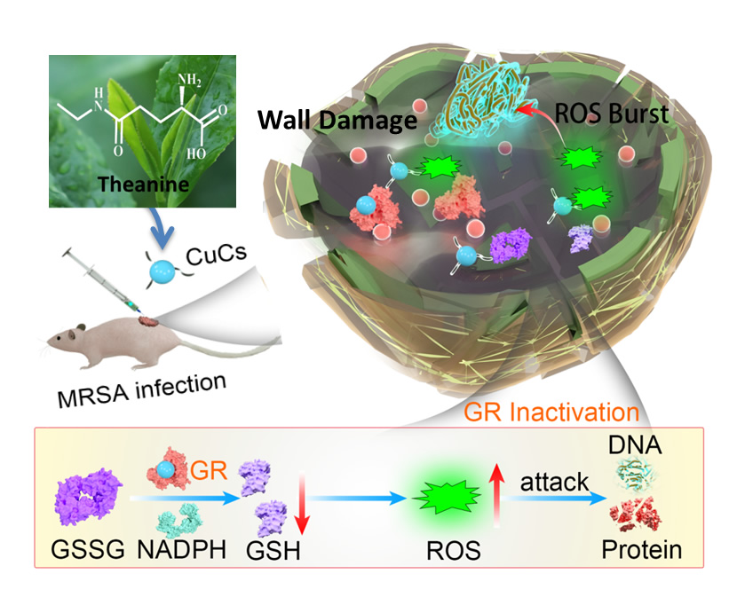 近日,我所茶葉質量與風險評估創新團隊在茶葉功能性成分利用與安全性評價研究方面取得重要進展,利用茶氨酸設計合成了一種新型的銅團簇抗菌劑,該抗菌劑可以有效的清除多重耐藥菌感染并且具有良好的生物安全性。相關研究成果發表在國際化學及材料科學著名期刊《Advanced Functional Materials(先進功能材料)》(IF=16.836)上。